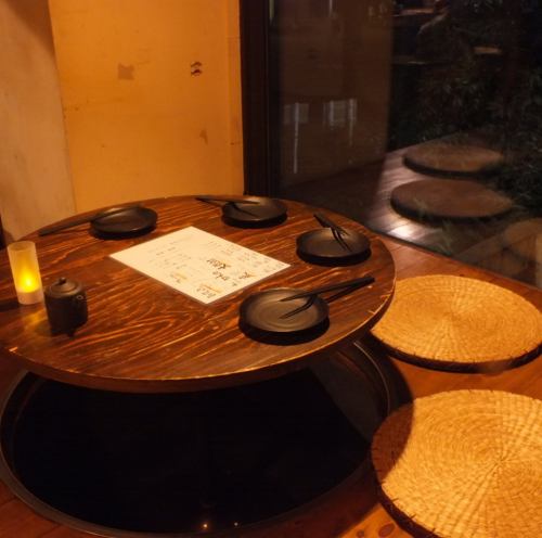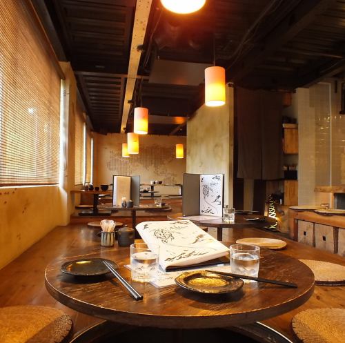 【隠れ家感満点の店内空間】知る人ぞ知る当店は、店内も隠れ家ムードにあふれています。掘りごたつ式のテーブル席に、一枚板でしつらえたカウンター席。ご友人や同僚との宴席にはもちろんのこと、お一人でふらりと公園散歩ついでに、一杯ひっかけていくのもオススメです。様々なシーンでご来店ください。
